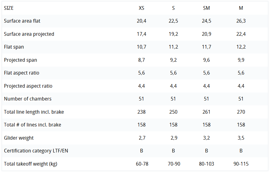 2.5-LINER | CELLS: 51 | ASPECT RATIO: 5.6 | WEIGHT: 2.9 KG (SIZE S) | CERTIFICATION: EN/LTF B
